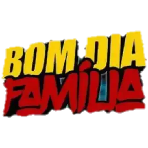 Um desenho colorido com as palavras 'BOM DIA FAMÍLIA' em letras grandes e estilizadas, com 'BOM DIA' em amarelo e 'FAMÍLIA' em vermelho.