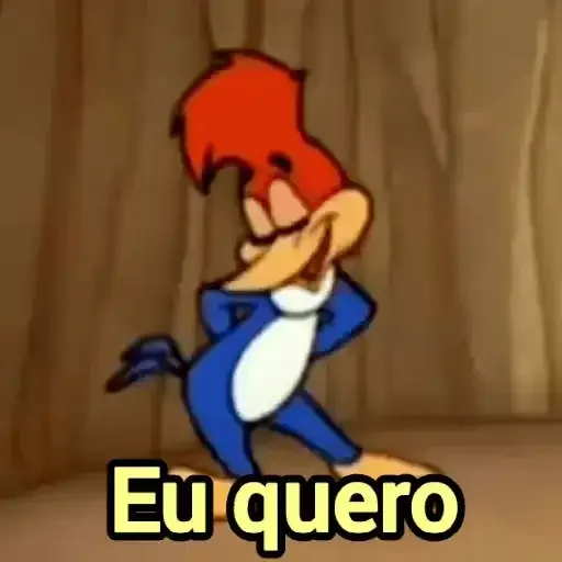 Um cartoon do Woody Woodpecker com uma expressão facial séria e o texto "eu quase cai" sobreposto.