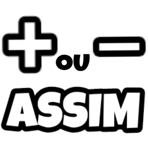 Uma figurinha com um sinal de mais, um 'ou' e um sinal de menos, com a palavra 'ASSIM' em letras grandes. O estilo é de um meme ou uma expressão de concordância.