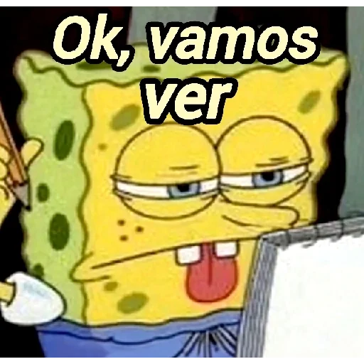 Esponja Bob com expressão cética, texto 'Ok, vamos ver' sobreposto.