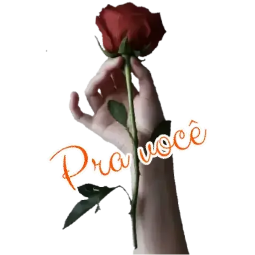 Uma mão segurando uma rosa vermelha com o texto 'Pra você' em laranja cursivo.