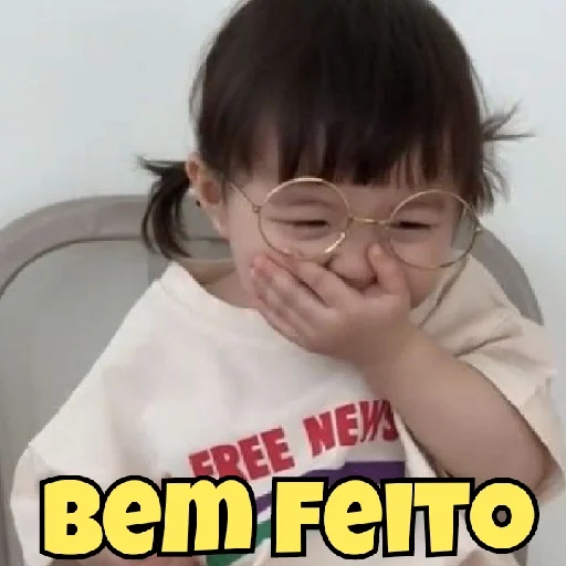 Menina com óculos e franja cobrindo a boca com a mão, com texto 'FREE NEM' e 'Bem Feito' em destaque.