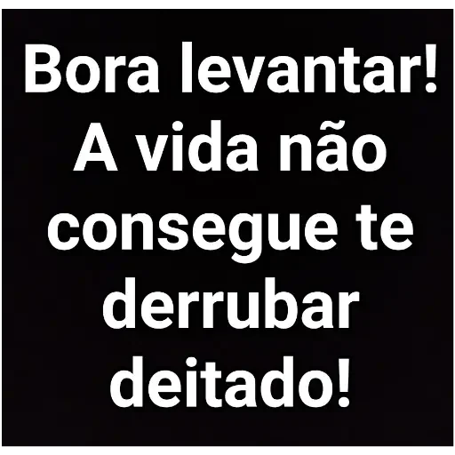 Um texto em branco sobre fundo preto. A frase 'Bora levantar! A vida não consegue te derrubar deitado!' está escrita em letras maiúsculas.