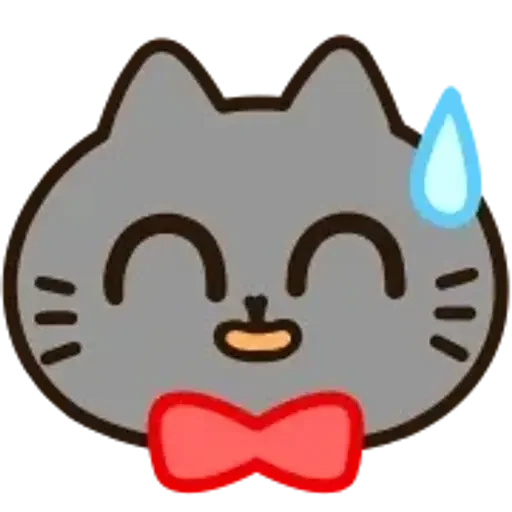 Rosto de um gato cinza com uma lágrima azul e uma gravata vermelha, parecendo triste ou suado.