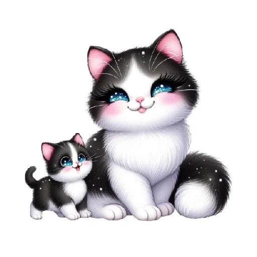 Dois gatinhos fofos, um maior e um menor, com olhos azuis brilhantes e orelhas cor-de-rosa, sentados lado a lado.