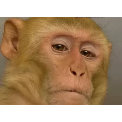 Rosto de um macaco com expressão séria e olhar pensativo.