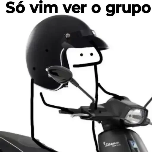 Um boneco de desenho animado usando um capacete de moto, com a frase 'Só vim ver o grupo' acima.