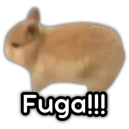 Um coelho marrom com os olhos fechados e a expressão séria, com o texto 'Fuga!!!' embaixo.