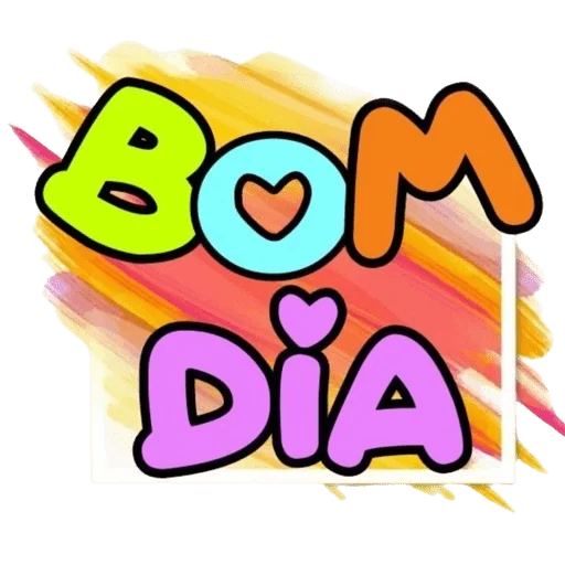 Um desenho colorido com as palavras 'Bom Dia' em letras grandes e decoradas, com um coração no 'O' e outro pequeno acima do 'i'.