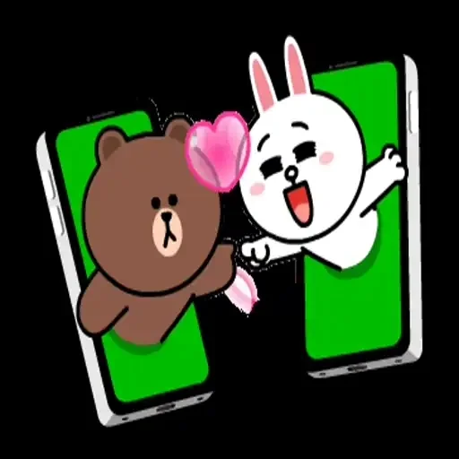 Um urso castanho e um coelho branco estão lado a lado, ambos em frente a celulares verdes. O urso tem um coração rosa sobre a cabeça.