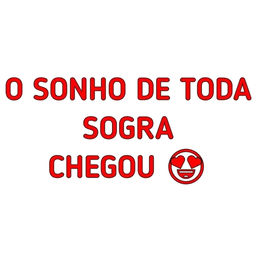 Um texto em vermelho que diz 'O SONHO DE TODA SOGRA CHEGOU' acompanhado de um rosto sorridente.