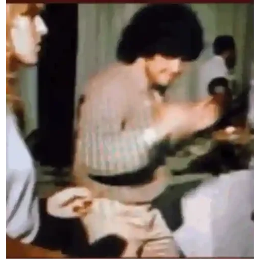 Homem com cabelo afro e camisa listrada fazendo um gesto com a mão, enquanto outra pessoa observa.