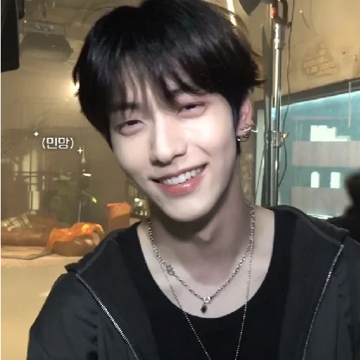 Um jovem com cabelo ruivo e uma expressão facial indiferente, usando um colar com um emoji de rosto amarelo com uma…