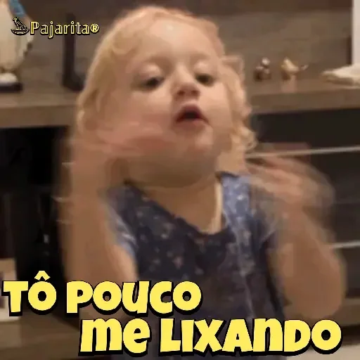 Menina loira com expressão de surpresa ou descrença, texto 'TÔ POUCO me LIXANDO' em amarelo na parte inferior.