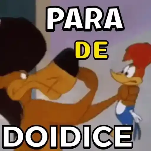 Personagem de cabelo preto repreendendo Woody, com texto 'PARA DE DOIDICE'