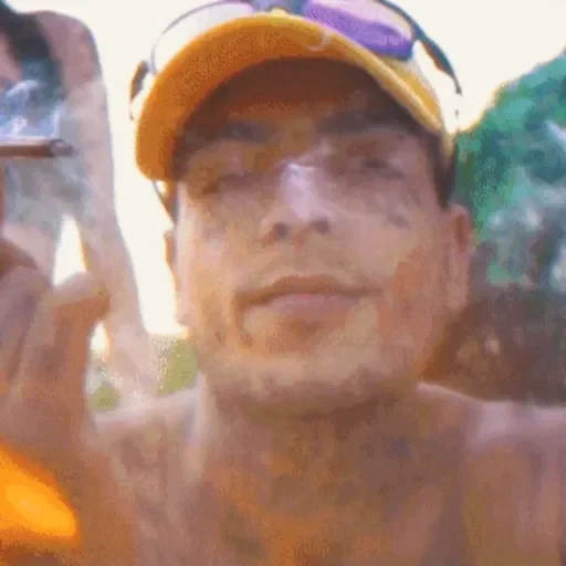 Homem com expressão séria, usando boné amarelo e óculos de sol, ao ar livre.