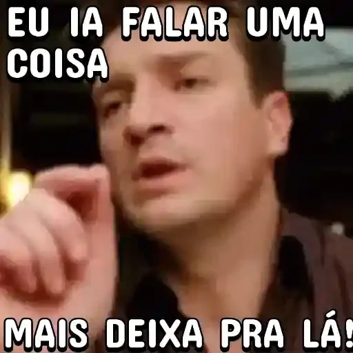 Um homem com a mão levantada e expressão pensativa, com o texto "EU IA FALAR UMA COISA MAIS DEIXA PRA LÁ!" sobreposto.