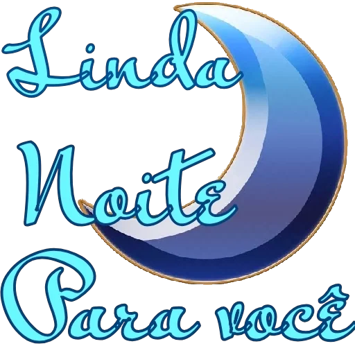 Uma lua crescente azul com contorno dourado e o texto 'Linda Noite Para você' em caligrafia azul.