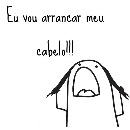 Um desenho simples de uma pessoa com expressão de desespero, dizendo 'Eu vou arrancar meu cabelo!!!'. A imagem é em preto e branco, com linhas simples.