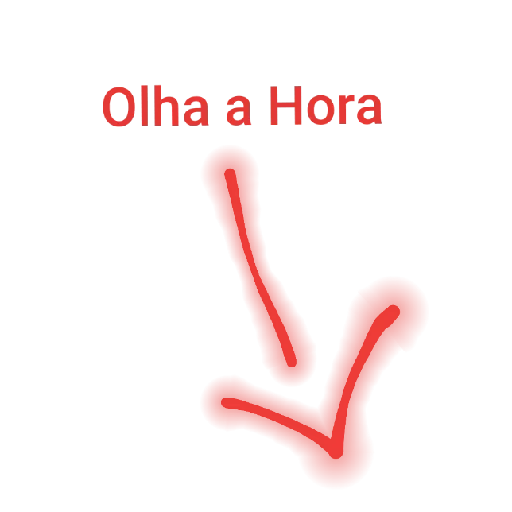 Uma seta vermelha com efeito de brilho apontando para baixo, com o texto 'Olha a Hora' em vermelho acima.