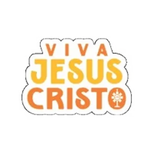 Uma figurinha com o texto 'VIVA JESUS CRISTO' em letras grandes e coloridas, com um símbolo de uma árvore ou flor ao lado.