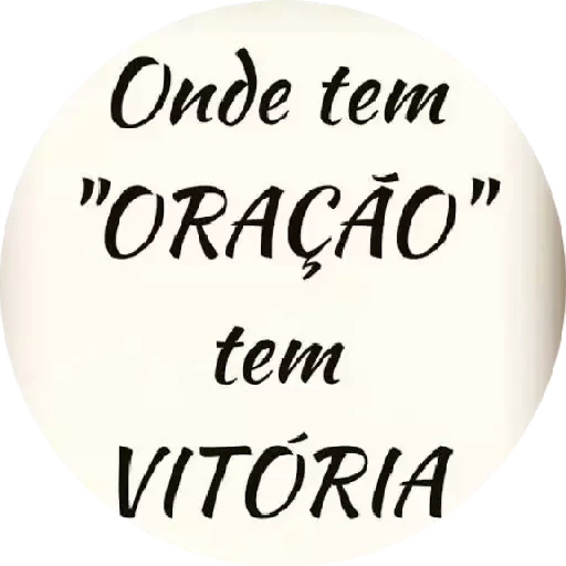 Um círculo creme com texto em preto. A frase 'Onde tem "ORAÇÃO" tem VITÓRIA' está escrita em uma fonte cursiva.