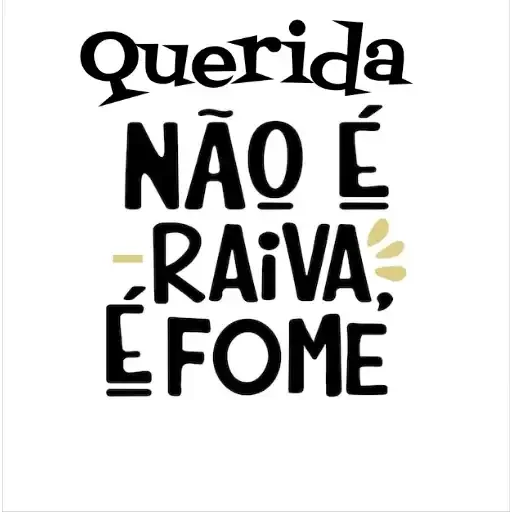 Uma figurinha com texto em preto sobre fundo branco. O texto diz 'Querida NÃO É RAiVA, É FOME' com algumas linhas decorativas e pequenos traços verdes.