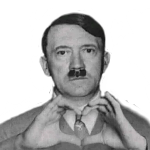 Homem com bigode preto ajustando a gravata, expressão séria, fundo branco.