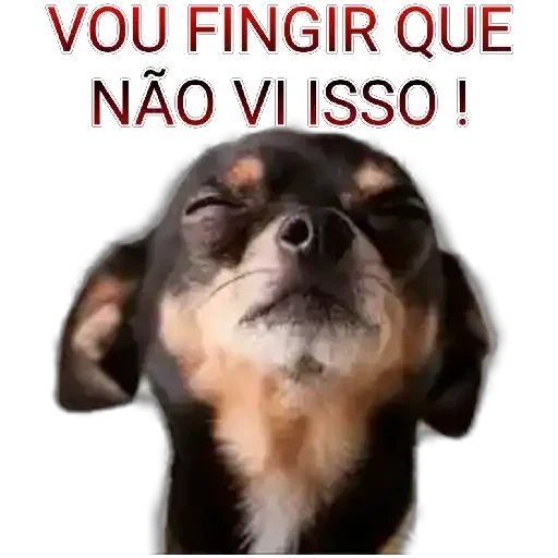 Um cachorro com os olhos fechados e expressão de ignorância, com o texto 'VOU FINGIR QUE NÃO VI ISSO!' em vermelho acima dele.