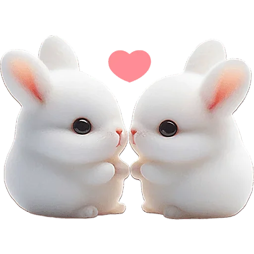 Dois coelhos brancos fofos sentados lado a lado, com um coração rosa acima deles.