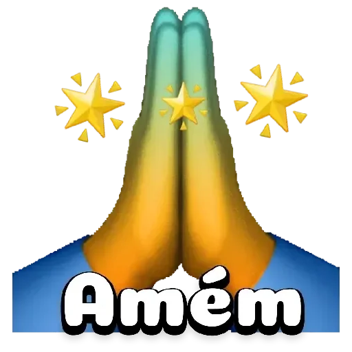 Mãos juntas em oração com estrelas ao redor e a palavra 'Amém' embaixo.