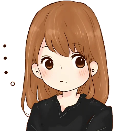 Garota de cabelos castanhos e olhos castanhos, com uma expressão neutra e bochechas rosadas, vestindo uma blusa preta.