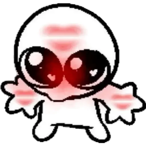 Um personagem de desenho animado com olhos grandes e coraçõezinhos no rosto, bochechas rosadas e expressão fofa.