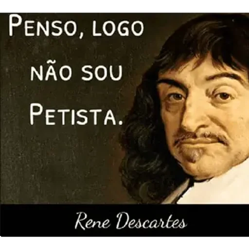 Um retrato de René Descartes com o texto 'Penso, logo não sou petista.'