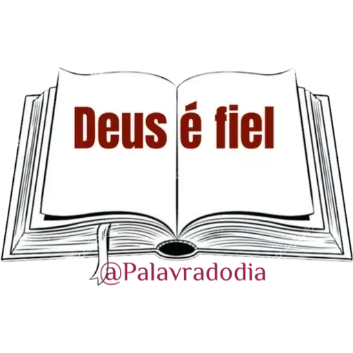 Um livro aberto com as palavras 'Deus é fiel' escritas em vermelho. O fundo é branco e o livro é cinza.