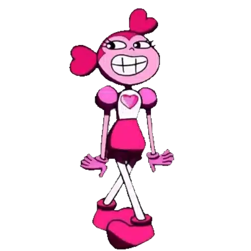 Personagem de anime rosa com coração no cabelo e no peito, sorrindo.