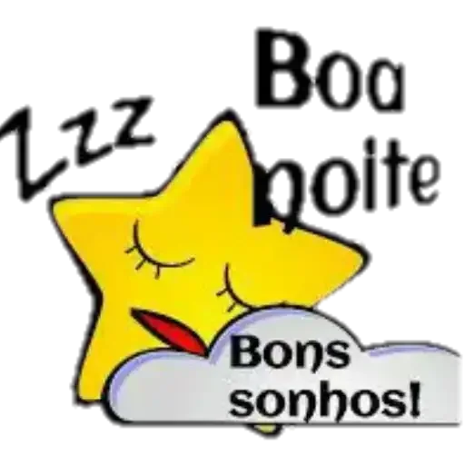 Uma estrela amarela dormindo em uma nuvem com o texto 'Boa noite' e 'Bons sonhos!'
