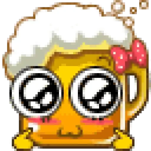 Cerveja com olhos grandes e laço rosa, parecendo sonolenta ou bêbada.