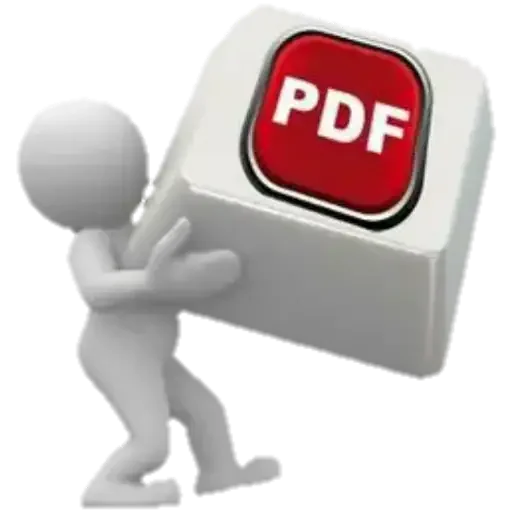 Um personagem de 3D carregando um bloco com o ícone de um arquivo PDF.