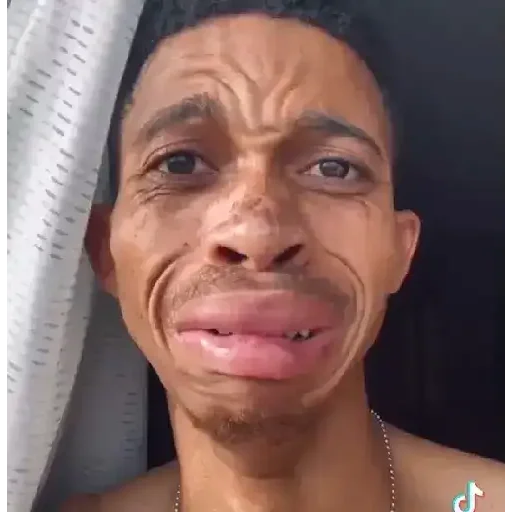 Rosto de um homem com expressão engraçada, língua para fora e rugas no rosto.
