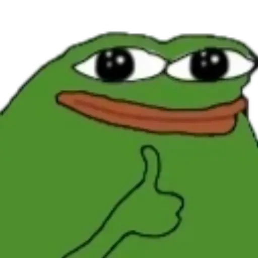 Um sapo verde com olhos grandes e um sorriso largo, fazendo um gesto de aprovação com o polegar para cima.