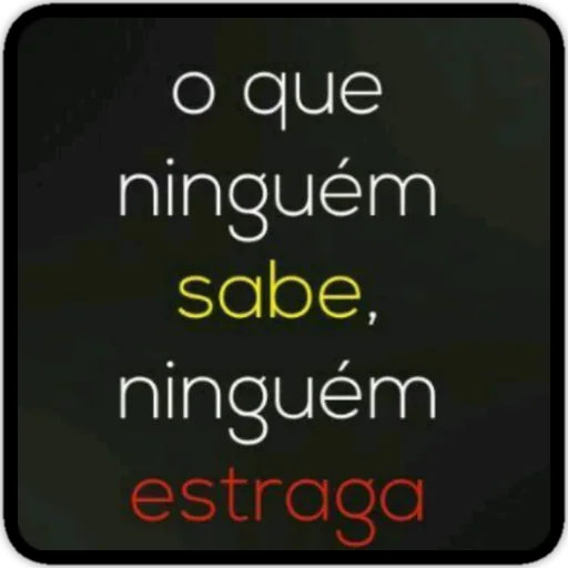 Um texto em português que diz 'o que ninguém sabe, ninguém estraga' com as palavras 'sabe' em amarelo e 'estraga' em vermelho.