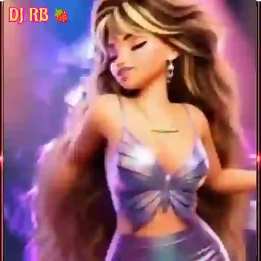 Uma mulher loira com um vestido prata dançando, com o texto 'DJ RB' no canto superior esquerdo.