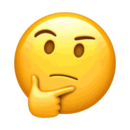 Rosto amarelo pensativo com a mão no queixo, sobrancelhas franzidas e expressão de dúvida.
