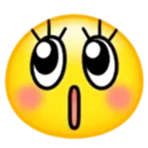 Rosto de emoji amarelo com olhos arregalados e bochechas rosadas, parecendo surpreso ou assustado.