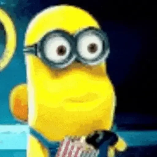 Minion amarelo com óculos e expressão curiosa, segurando uma caixa de pipoca.