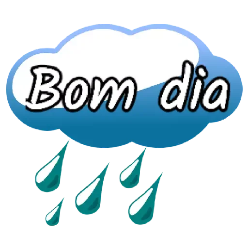 Nuvem azul com gotas de chuva e o texto 'Bom dia' em branco com contorno preto.