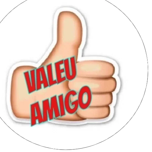 Um polegares para cima com as palavras 'VALEU AMIGO' em vermelho.