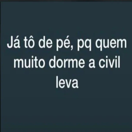 Um texto em fundo escuro: 'Já tô de pé, pq quem muito dorme a civil leva'