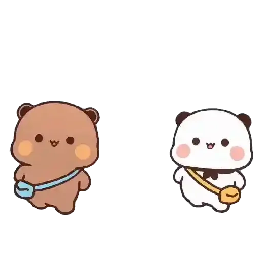 Dois ursos fofos, um castanho e um branco, com bolsas coloridas.